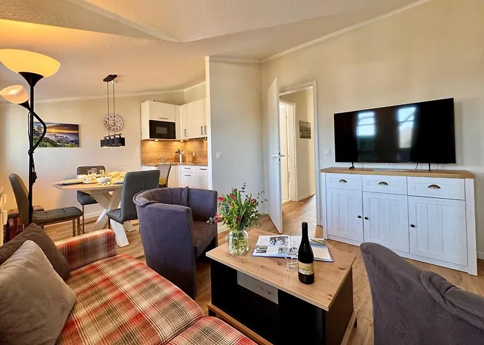 Apartmán Fewo 380, Seepark Sellin o velikosti 57 m^2 má využití kola a barber shop. Promenáda Bernsteinpromenade v pobaltském letovisku Göhren je vzdáleno 4 km od ubytování, zatímco Seebrücke Sellin je vzdáleno 1 km.